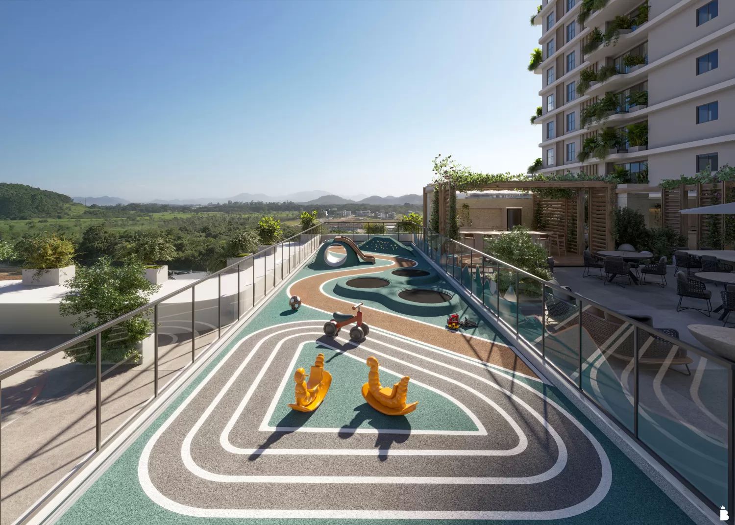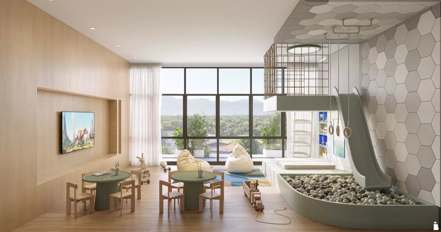 O bairro evolui em perfeita sintonia, onde as áreas de convivência e lazer convidam ao equilíbrio e à contemplação.