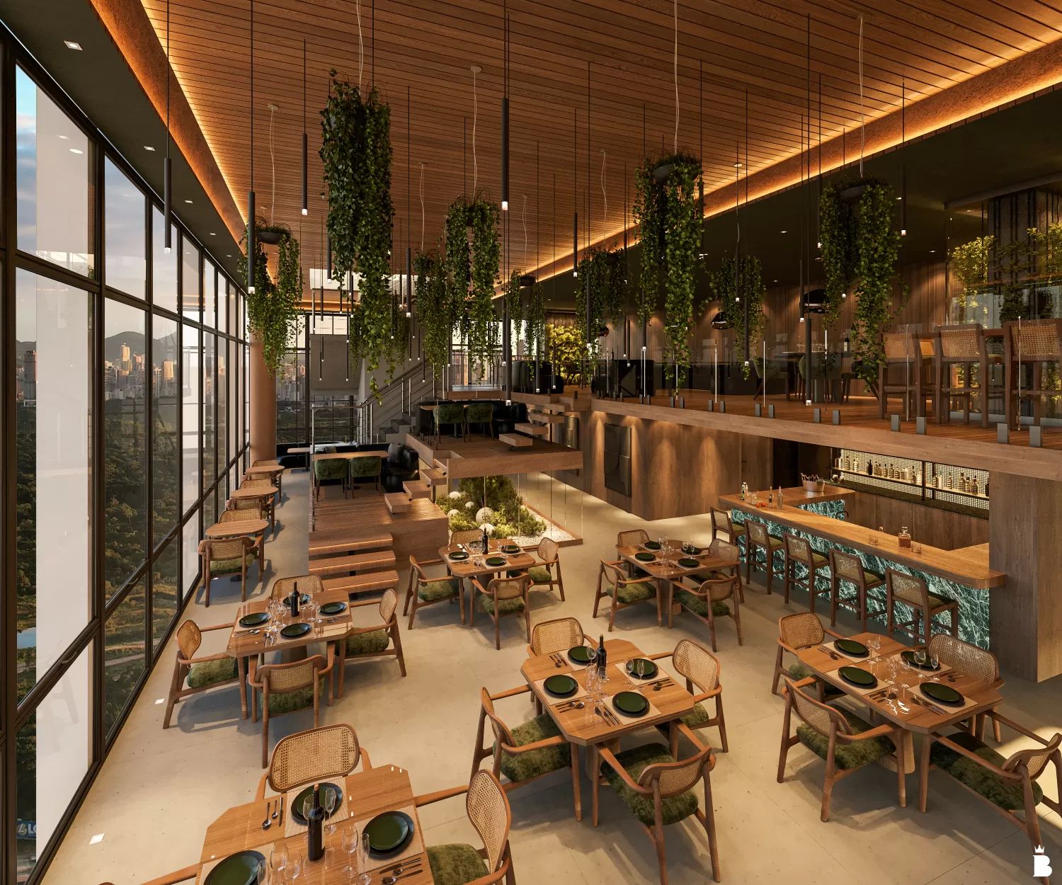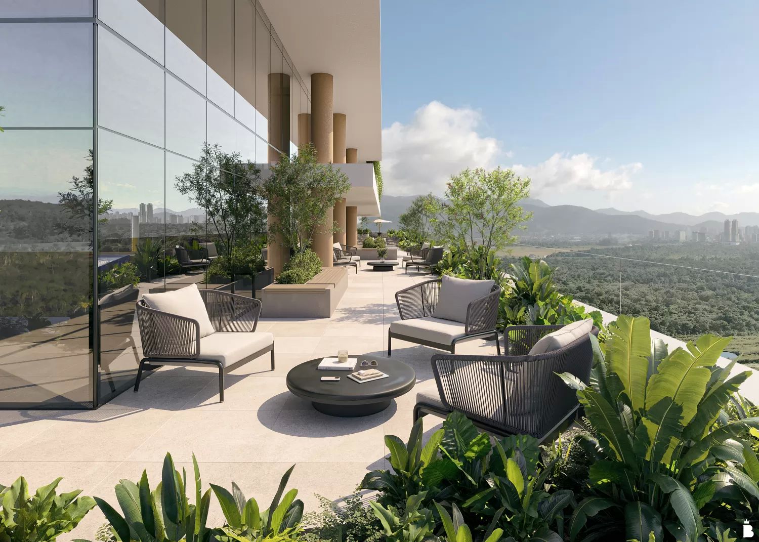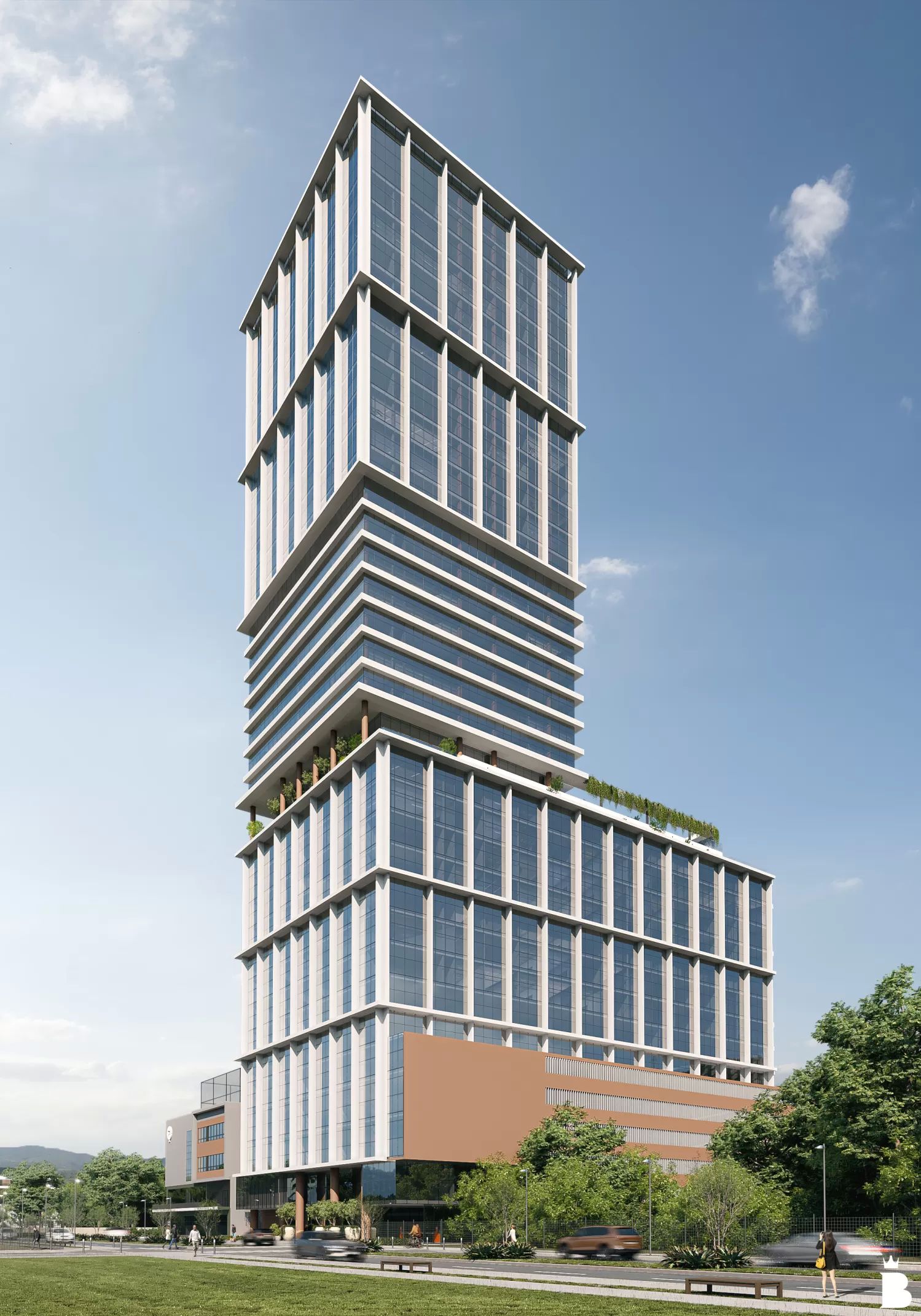 Oferece modelos mixed-use, coworkings e escritórios flexíveis, plantas adaptáveis, estacionamento rotativo e elétrico, além de lounges, terraços, restaurantes, auditório para 300 pessoas e heliponto.